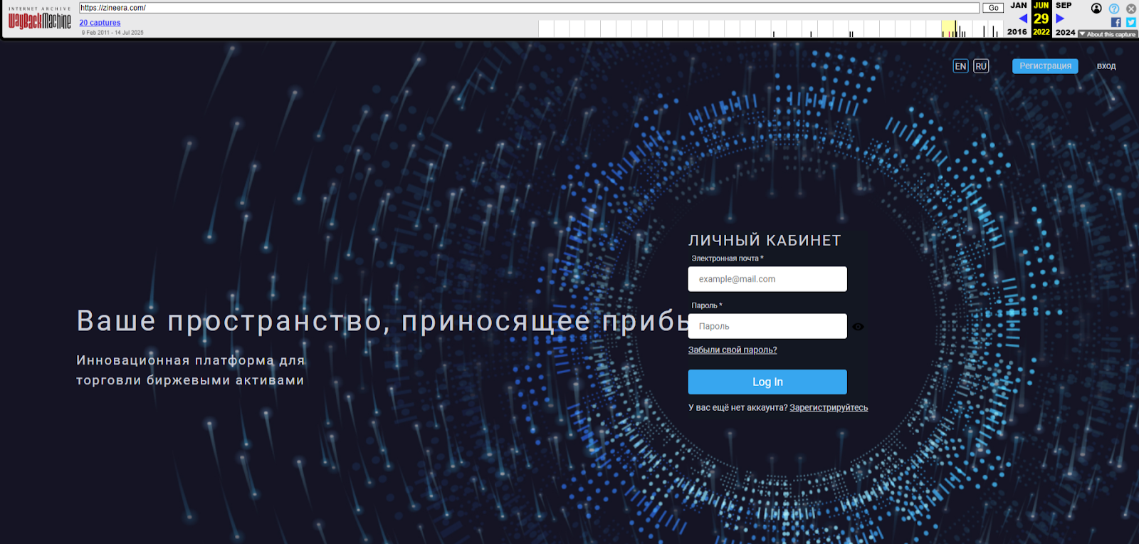 Внимательная проверка веб-сайта торговой платформы позволила выявить, домен zineera com в начале января 2022 года был припаркован бесплатно за счет GoDaddy com. Биржей он стал 29 января 2022 года. Данный факт говорит о том, что портал не мог принадлежать организации, которая на тот момент около 5 лет предоставляла трейдерам торговую платформу.