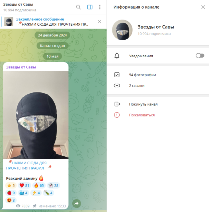 Телеграмм-канал «Звезды От Савы» был создан 24 декабря 2024 года. Но первый пост автор выложил всего месяц назад, 10 мая 2025 года. Причем в этой публикации он не стал представляться перед аудиторией и рассказывать конкретику о своем проекте. Здесь блогер оставил лишь кликабельную ссылку на пост, в котором якобы можно прочитать какие-то правила.