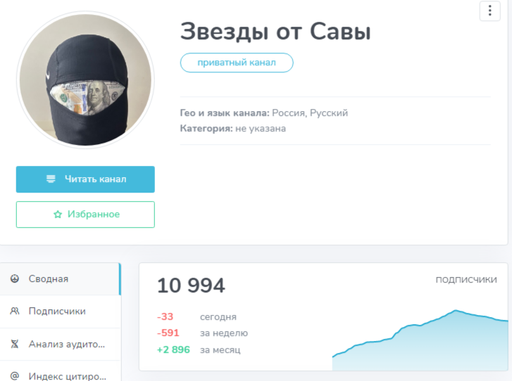Зато, нам удалось попасть на сервис, где расположена статстика этого сообщества. Так мы увидели, что за месяц на него подписало почти 3 тысячи подписчиков, а за неделю отписалось более 500. Этот факт указывает на то, что автор накрутил зрителей. Но видимо, кому-то это не понравилось, и они стали уходить с канала.