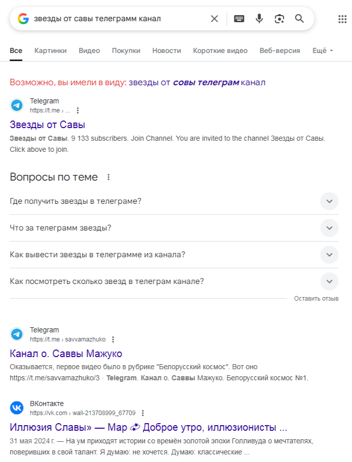 Чтобы узнать подробности о деятельности данного автора, мы решили обратиться к интернету. Но тут ничего не оказалось. Получается,что проект Савы не имеет успешной репутации и востребованности среди телеграмм-аудитории. Хотя на своем тг-канале «Звезды От Савы» он ежедневно выставляет довольные отзывы.