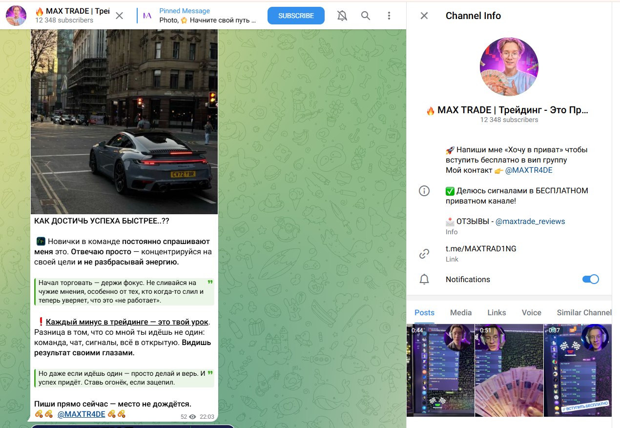 MaxTrade – один из телеграм-каналов о заработке на трейдинге и криптовалюте. Молодой трейдер предлагает торговать по его стратегии и сигналам и получать большую прибыль. Пользователей он приглашает в закрытый, но бесплатный канал, где как раз и дает сакральные знания своим клиентам. Можно ли доверять трейдеру, или это очередной скамер из Телеграма, рассмотрим в статье.