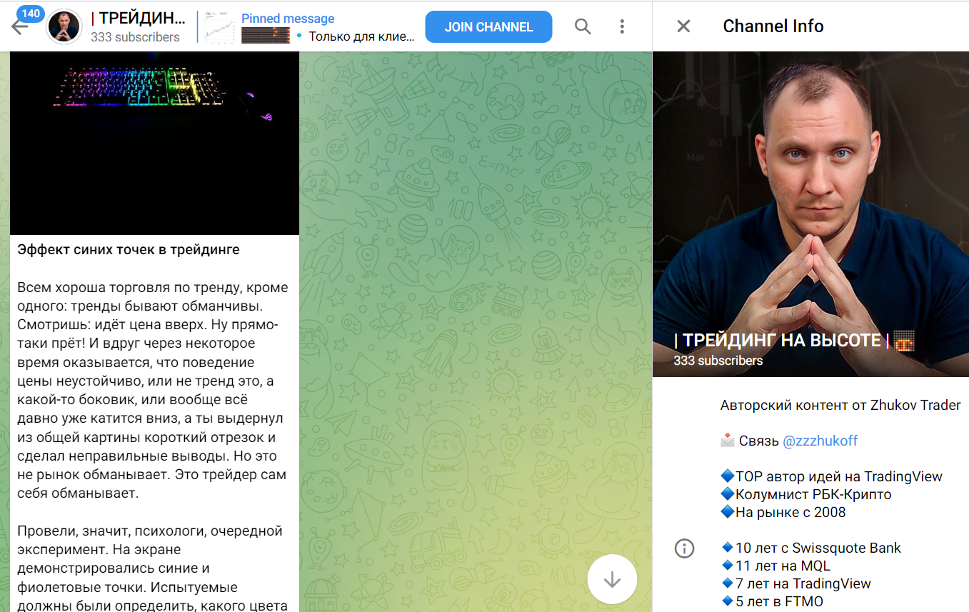 Telegram канал Zzzhukoff Channel (ТРЕЙДИНГ НА ВЫСОТЕ) начал функционировать с апреля 2024 года, и на него подписалось более 300 человек.