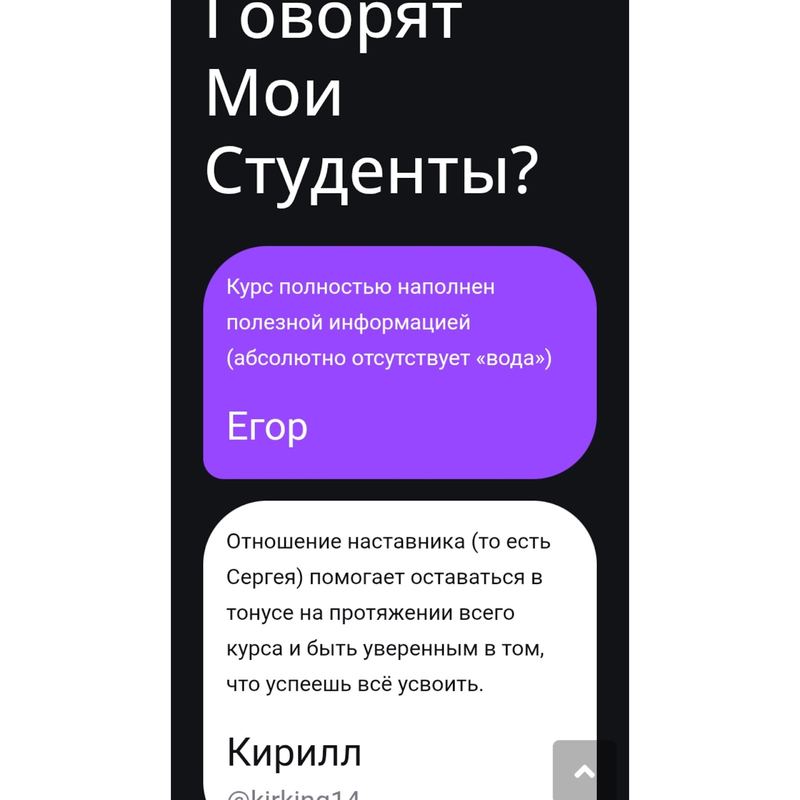 На сайте создатель курса размещает положительные высказывания от учеников.