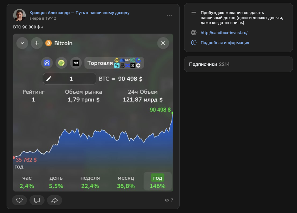 У инвестора есть страница во «ВКонтакте» – «Кравцов Александр Путь к пассивному доходу», investsand. На нее подписано около 2,2 тысяч человек. Однако новым контентом автора в ВК интересуется немного людей. За сутки пост собирает 5-10 показов.