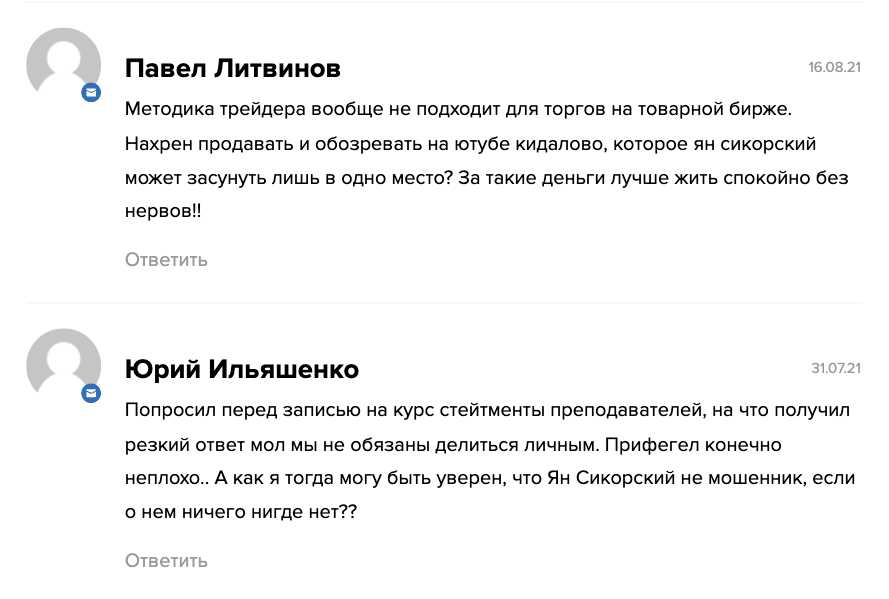 Отзывов о Яне Сикорском в интернете немного. Это означает, что трейдер мало кому известен. Найденные ревью являются негативными.