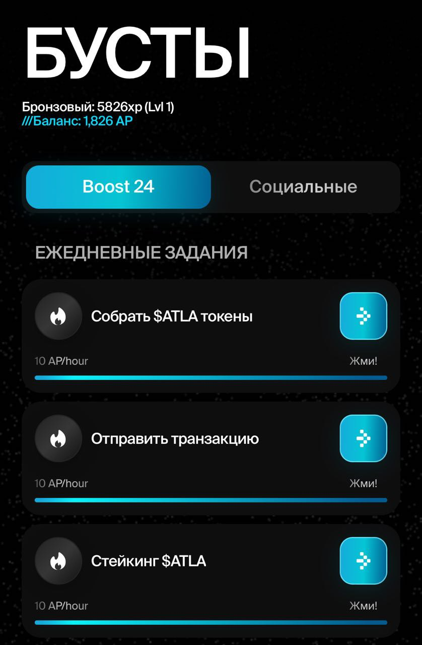 AtletaTAP — это приложение, созданное на базе Telegram. Его суть сводится к тому, что юзер раз в четыре часа заходит чтобы забрать ALTA поинты и покупает бустеры, чтобы получать больше поинтов. Пользователи в рамках игры могут получать местные токены, обменивать их, осуществлять транзакции, размещать криптовалюты для стейкинга и другое.