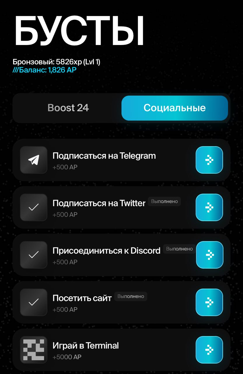 Зато в игре представлен обширный список заданий, о котором уже было ненароком сказано. Несмотря на их обилие, глобально их можно поделить на две группы. К первой категории относятся те задания, которые как-то вовлекают и стимулируют развитие игроков на платформе Atleta Network. Задания звучат следующим образом: “Собрать ALTA токены”, “Отправить транзакцию” и т.д.