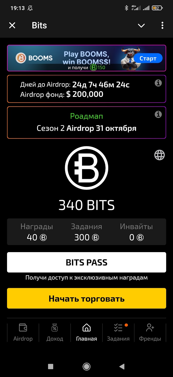 На главной вкладке тапалки Bits пользователю предложено купить Pass. Это билет, который дает повышенные награды в приложении.