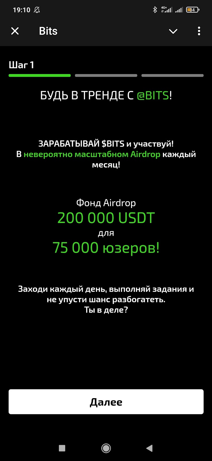 Раздел Bits airdrop предлагает выполнить три условия для участия в раздаче в конце октября. Нужно совсем немного: