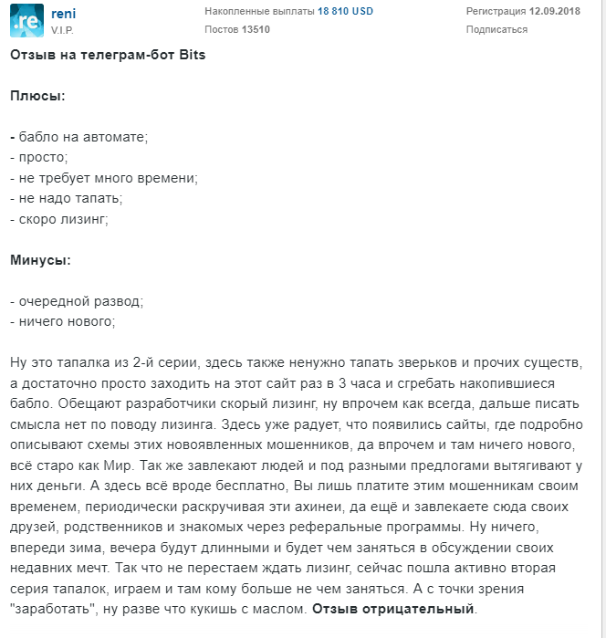 Очевидно, что в тапалка Телеграм Bits выводят средства пользователей вручную.