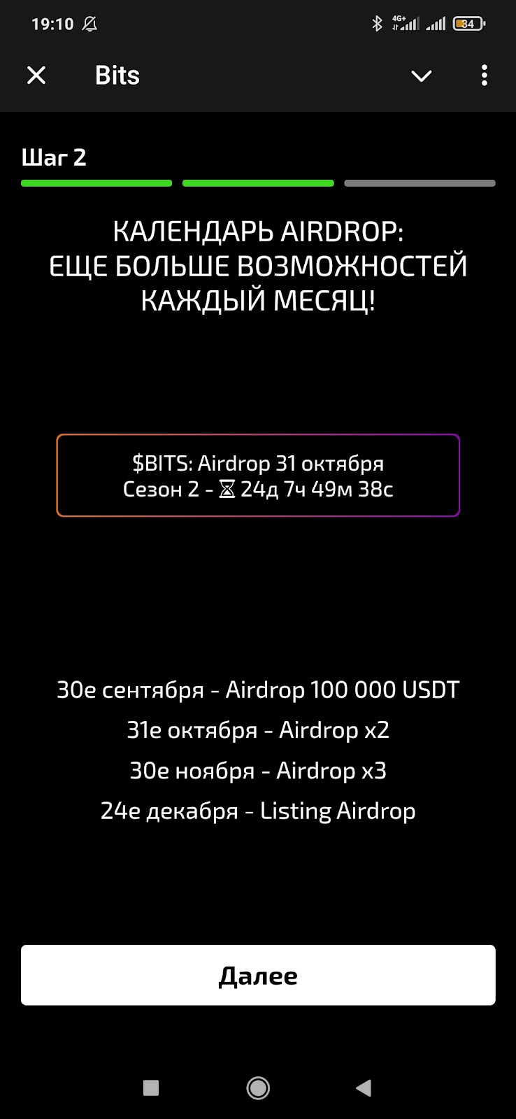 Разработчики тапалки не делают тайны об окончании игры и раздаче дропа. В приложении указано, когда листинг Битс запланирован, датой назначено 24 декабря 2024 года. До момента листинга токена Bits предусмотрено три раздачи: