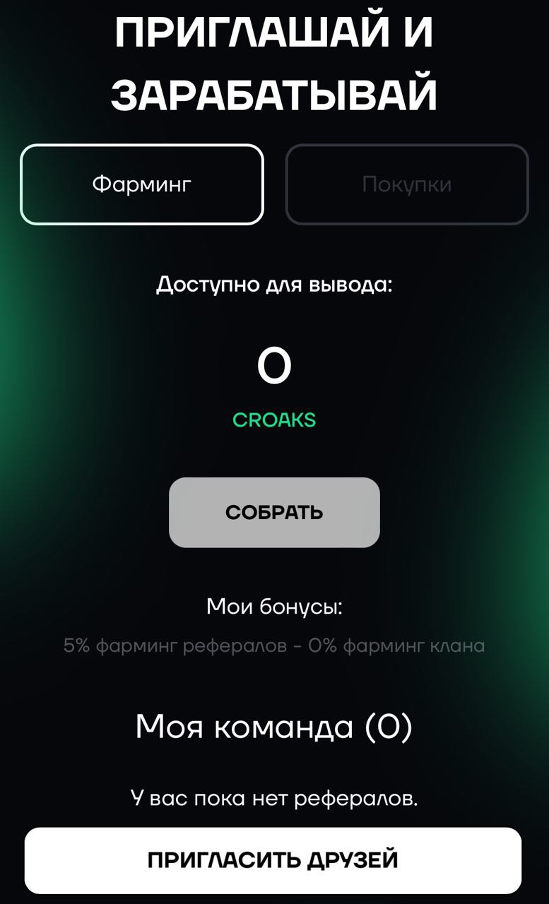 После того, как вы открыли Frog Farm, можно начать майнинг местных баллов CROAKS. Эти баллы — свидетельство того, что игрок вовлечен в проект FrogFarm и чем больше их будет накоплено, тем большее их количество можно будет перевести в койн Frog, который уже можно будет вывести в фиат.