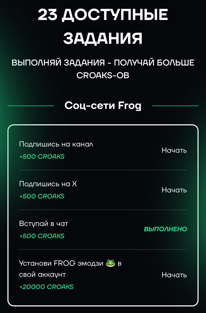 • подписаться на канал Frog Farm в Telegram за 500 токенов;